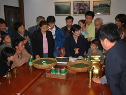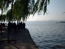 中国で、中国人に交じってツアーに参加するよさは、観光地をくまなく回れること、ただ、ガイドはほぼ中国語のみですので、多少中国語ができないと、集合時間などの情報交換が難しいかもしれません。また、ご飯も一人に一食が供給されるわけではなく、安いツアーの場合はほとんどが、みんなでくるくる回るテーブルに乱雑に並べられた中華料理をつつきあうという事になりますし、杭州の旅にも関わらず、伝統的な杭州料理は食べれません。今回の杭州の旅でも、中国の人たちと皿を(それもどこにでもある中華料理です)つつきあうのがいやだったので、夜ホテルに戻ってからは、街に繰り出し、夕食を食べました。タクシーの運転手に「杭州で伝統的な杭州料理が食べれる所はどこですか?」と聞いた所、「天外天」と「楼外楼」の2つを教えてくれました。楼外楼は西湖の側に、天外天は山の奥、観光地で有名なお寺の側にあります。 |