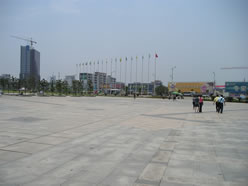 杭州から義烏へはタクシーで向かいました。距離にすると大体130キロくらいで、高速を走ればタクシーで2時間半、タクシーを半日900元=約12600円でチャーターして、1日で杭州から往復しました。義烏に向かう途中に見えるのは、だだっぴろい平原と畑、後はなぜか豪華でちょっと変わった形の農家の家などです。高速道路やトンネル、インターなどは日本の技術が入っているのか、一般的な中国のものとは違って、日本のような感じでした。義烏はまだまだ開発が続いているのか、建設中の建物(写真左下)が多く見られました。