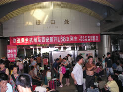杭州から上海までは電車を使いました。飛行機だと結局空港まで行くのに時間がかかるので、市内に近い杭州駅から電車を使いました。料金は2つあって、堅い席(2等車)で20元前後、柔らかい席(1等車)で50元でした。電車の予約は、電話一本でできますし、チケットも別途料金300円ほどで配達してくれます。待合室も、1等車の場合は、特別席が用意されており、その差は雲泥の差です。もし中国で電車に乗られることがあるなら、是非、1等車に乗られることをオススメします。