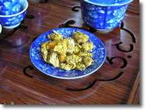 ジャスミン茶の中では人気の高い、お湯を入れると開く、ボールのような形をしたお茶です。