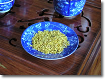 キンモクセイの花で、上品な香りが特徴的です。プーアルと一緒に飲むと、相性ぴったりです。