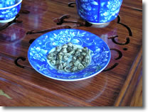 中国茶の花茶と言えば、このジャスミンが代表的です。なかでも、この丸い形をしたジャスミンは特徴的で、お湯を注ぐと鮮やかな花が開きます。ビタミンを多く含むといわれているので、美容効果が期待できますが、観賞用にもぴったりです。