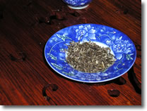白茶のひとつで、清らかな香りと、さっぱりとした味が特徴的です。味が出にくいので、お湯を注いでから数分待たなければいけません。ストレス解消の効果があると言われています。