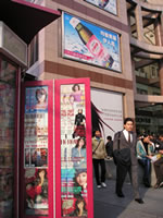 上海では雑誌類はほとんど路上の雑誌屋で売っており、本屋では売ってありません。(写真参照)